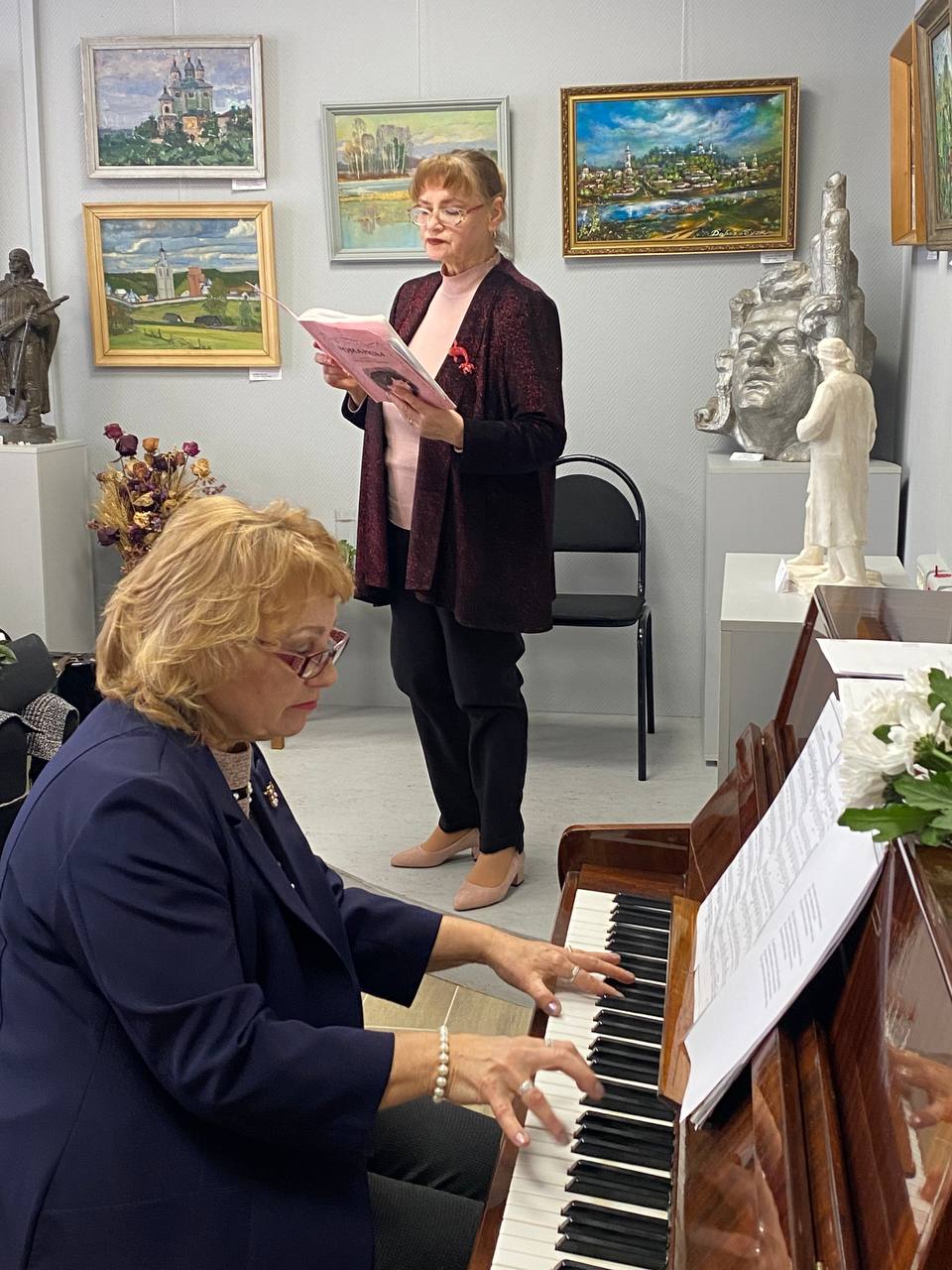 И устроили этот праздник наши гости: Татьяна Робертовна Симонова, композитор, поэт, заслуженный работник культуры России, преподаватель Детской школы искусств № 8 имени Д.С. Русишвили города Смоленска, кандидат педагогических наук, автор методик и программ по музыкальному воспитанию, серии уникальных нотных сборников для детей и юношества, лауреат многочисленных конкурсов, и Татьяна Юрьевна Васильева, теоретик, фольклорист, музыковед, певица, словом, педагог-музыкант по образованию, музыковед по призванию. Её талант свободно говорить о музыке и музыкантах уже успели оценить дорогобужане, слушая её авторские программы о М.И. Глинке, Дж. Верди, участвуя в апреле 2023 г. в открытии выставки «Звуки и краски» памяти известного смоленского композитора, художника и педагога Владимира Сухорукова, мужа Татьяны Юрьевны.