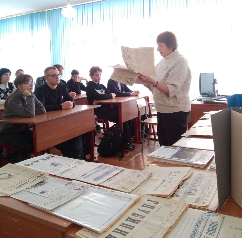 Первый рабочий день после новогодних каникул музей отметил мероприятием в Дорогобужской школе №2. Встреча с десятиклассниками была посвящена Дню Российской печати. Эта тема довольно широко представлена в музейных экспонатах. Часть из них и была использована на двух уроках в школе.