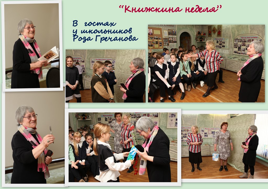 На «книжкиной неделе» учащимся школы №2 были представлены также сборник стихотворений для детей «Пере-пере-перемена» и рассказы для детей «Башня». Эти книги тоже имеются в музейной библиотеке. Но представить их школьникам мы попросили авторов друзей музея Николая Романовича Жигарева и Розу Константиновну Гречанову. Каждый из них встретился с учащимися начальных классов.