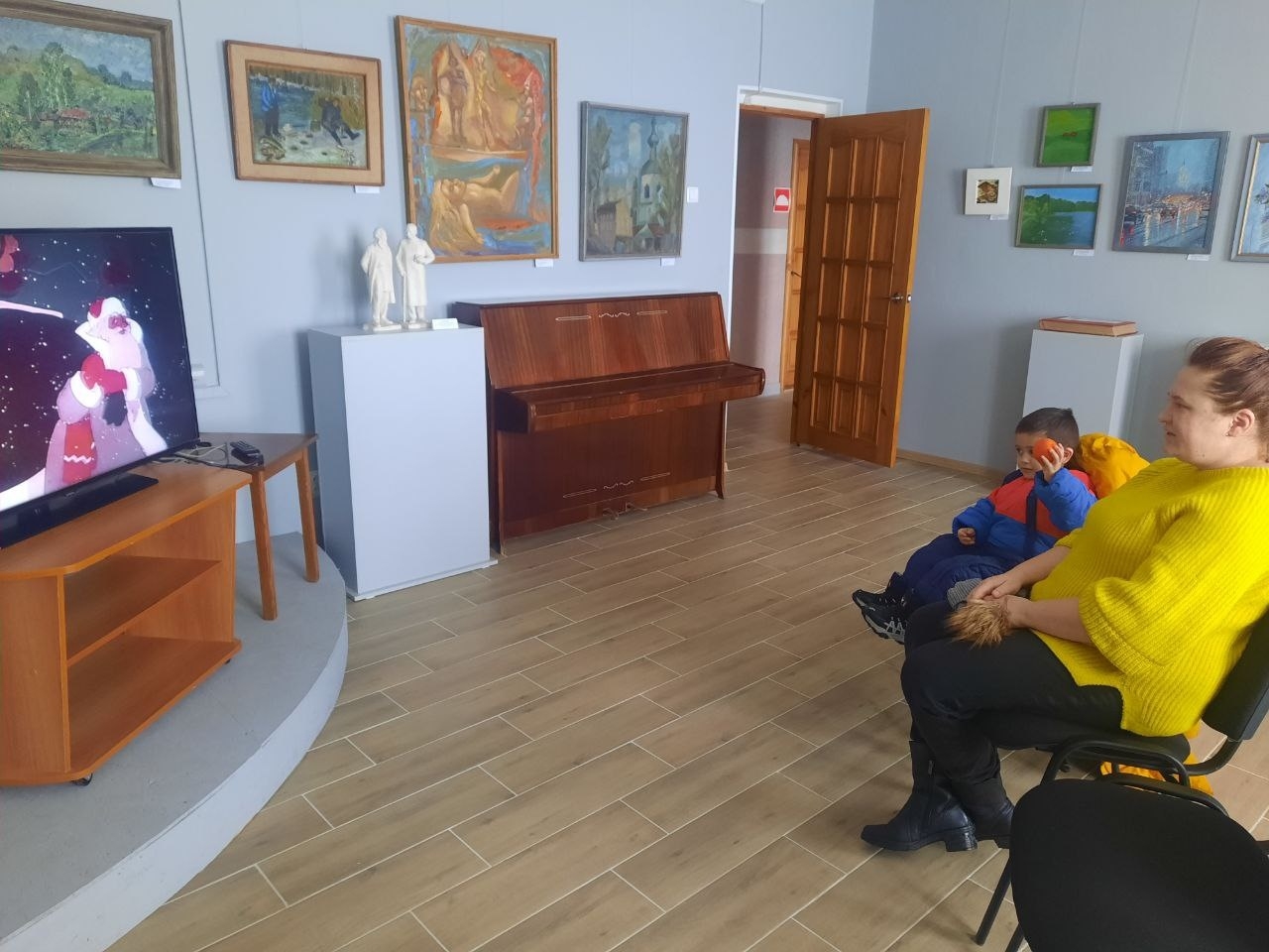 А вот и первые в наступившем году посетители нашего музея! Детвора разгадывала новогодние загадки, получая в качестве приза мандарины и конфеты, знакомилась с экспонатами, смотрела любимые мультфильмы.